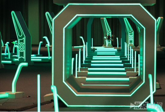 竞速赛中无人机在通过赛道(潘琦 摄)