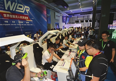 世界智能无人机竞速赛现场,来自世界9个国家和地区的40位无人机飞手进行角逐。