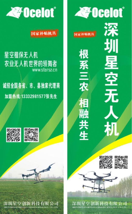 星空S系列电动植保无人机产品经过无数次高强度测试,性能稳定可靠,耐用性好,故障率低,专利防荡药箱及离心专业喷嘴保证喷雾均匀充分。该系列植保无人机广泛应用于高山、丘陵、平原、盆地等各种地形,在水稻、小麦、玉米、棉花、果蔬、茶园等农作物上作业效果良好,可以执行喷药、除草剂、催熟剂、落叶剂等多种植保作业任务,是国内综合性能最佳的植保无人机。