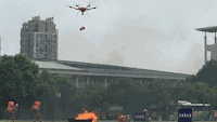无人机携带3枚灭火弹,利用画面回传,精确定位投掷位置。