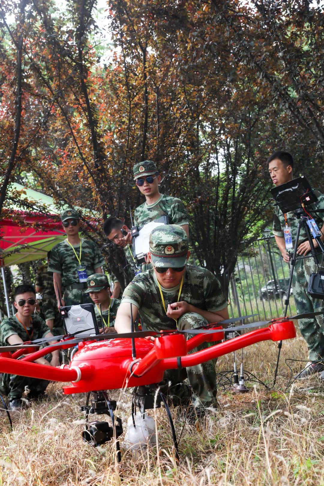 无人机远程投放全地形侦查机器人,开展狭小空间深度探测,建立“空地一体”侦查体系。