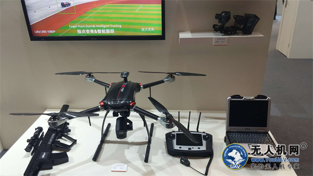 杭州海康威视数字技术股份有限公司展示单兵无人机反制枪,对入侵无人机进行直接驱离。