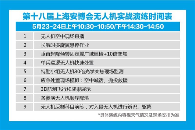 上海墨扬智能科技有限公司的无人机已经提前升空进行长航时多旋翼悬停作业科目,悬停于演习长上空直至演习结束,展示了其电动多旋翼长滞空的能力。
