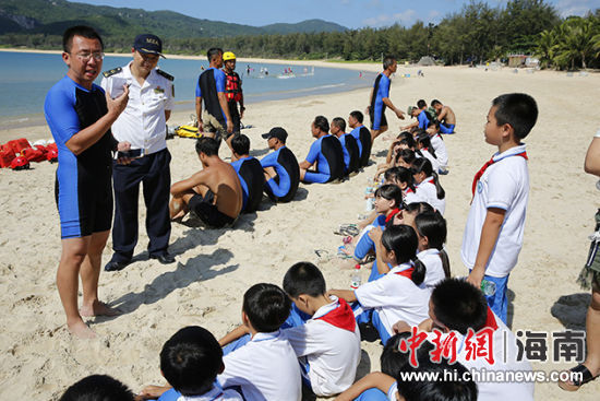 海棠湾藤海小学30名小学生现场观摩救援综合演练。“这对学生们来说是一次非常深刻且有效的水上安全宣传教育。”带队老师说,藤海小学距离大海不到300米,学生们应该知晓最基本的海水救援知识。