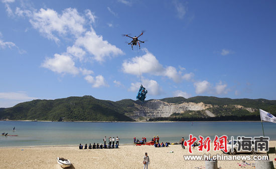 救援综合演练中,模拟有人在离岸百米远的海上溺水。救援人员获知险情后,一边起飞无人机,挂载救生衣投放到溺水人员身边;一边组装冲锋舟,驾驶到溺水人员处将其救起。人员被救上岸后,救援人员还对溺水者进行初步紧急施救。除此之外,救援人员还针对礁石(活饵)救援等状况进行了实战演练。