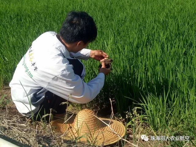5月25日,羽人查看播种后水稻长势