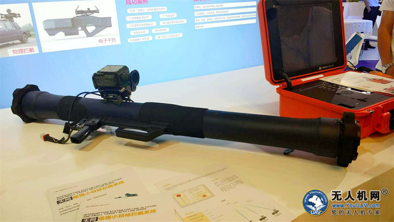 在刚结束的上海国际警用机安防无人系统博览会上无人机网记者发现了一款极具吸引力的反无人机产品,从外观上看类似于一个肩抗式的火箭筒,但是其并非一款战斗性的轻型火力武器,而是一款抓捕无人机的反无人机系统。