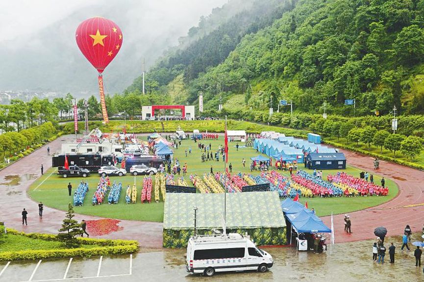 5月9日,汶川县映秀镇一夜雨未停,上午10点一声警报,七一映秀中学千余名学生迅速撤离教学楼,阿坝州岷江流域自然灾害大演练拉开帷幕。