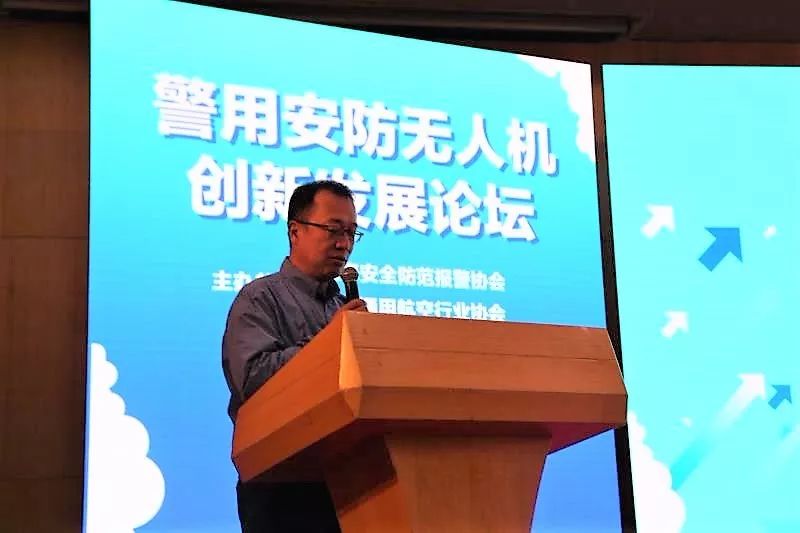 中国航空运输协会通用航空分会、原国家空管委副主任孙卫国在讲话中表示建议推行“民用无人机应用技术标准”,在安防方面的飞手培训,对于不同警种应有所侧重。苏州市公安局警保处唐为甲科长在论坛中也就无人机在警用及安防的应用发表了看法。