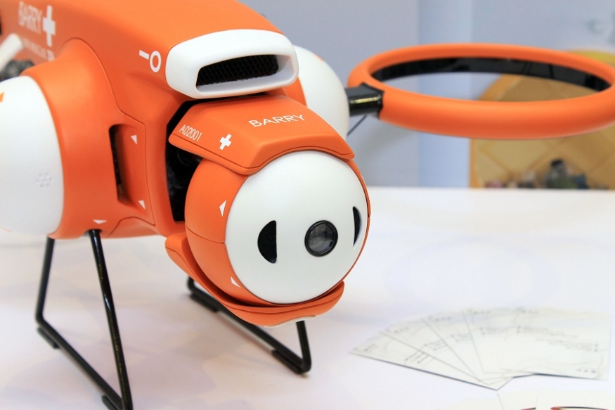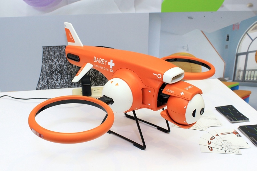 东南亚科技大学创意产品设计系的摊位展出了一款没有螺旋桨的无人机《 Barry Rescue UAV 》,设计者卢沛诚与萧季昕表示,这款无人机用于山难救援使用,因山林多树木影响飞行,所以采用了喷气式设计,避免了螺旋桨误触树枝造成坠机的危险。无人机陎了前置镜头,另有麦克风与扬声器,使用者可以借此与伤者沟通得知其状况。