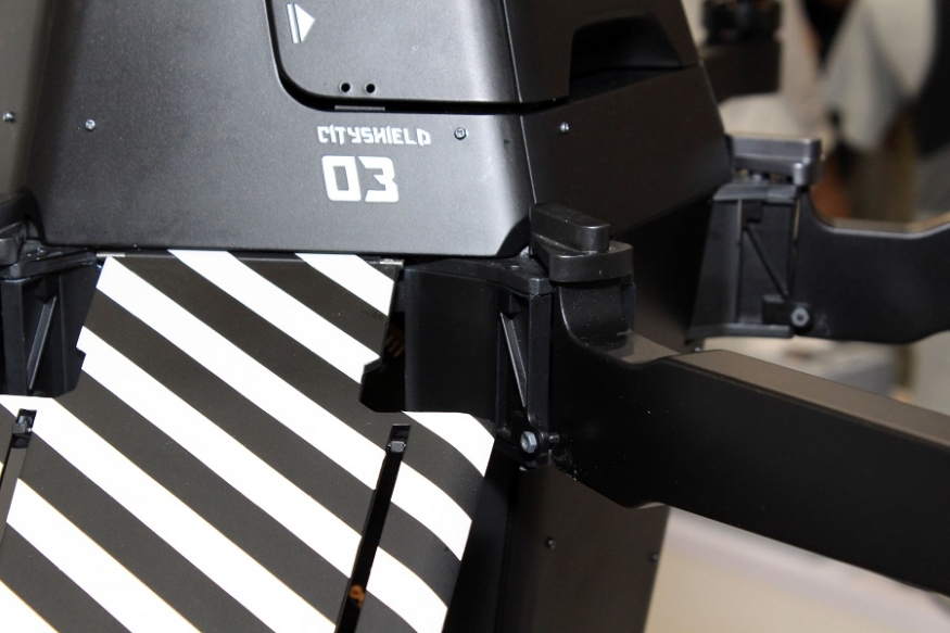 大同大学工业设计系另一个展品《 CityShield 》,把无人机结合空气净化器,希望能解决日渐严重的空气污染问题。无人机可以规划飞行路径,侦查空中空气品质,同时可以作出。设计者谢天怡表示,多台无人机编队飞行可以提高净化的效率,若以小学校地面积计(一般约 20,000-25,000 平方米), 5-6 台无人机可以达到空气净化效果。