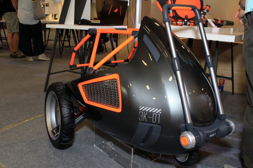 实践大学工业产品设计系展出一款消防用无人机作品《 Fire-V 》,由于不少巷弄环境狭窄,学生设计出机车拖曳车可装载三台无人机。无人机可用到消防员进入火场前作侦察使用,它的轮子以五个哑铃形状设计,具有伸缩可以攀爬楼梯或火场上不平的地面,它具有感测器可以探知现场的温度和浓烟指数,同时有摄影机拍摄现场环境。