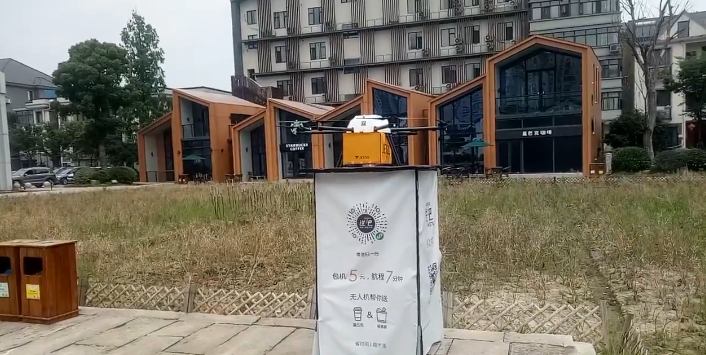 而这家无人机,承诺“航程”七分钟之内。据了解,这架无人机是杭州一家科技公司的产品,专业提供无人机物流配送服务。相比于人们熟悉的拍摄用无人机,这架无人机体型较大。现在在未来科技城附近开发了两条线路,只要顾客在APP点了外卖,他们就可以帮助咖啡店用无人机送餐。