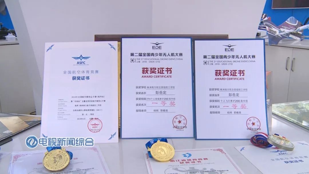 无人机战队教练杨刚告诉记者,他们在比赛中获得了四金二银,有位同学叫彭岳定,他是获得了两个单项的冠军,也是总分排第一。另外两位同学是双胞胎,他们是获得了一等奖。