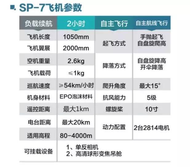 天途航空SP-7双发、电动固定翼无人机,是天途航空自推出长航时SP-9双发、电动固定翼无人机之后,新推的一款轻量级、易携带、全自主飞行的工业级、支持野外单兵使用的无人机飞行平台产品。