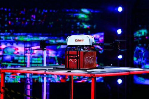 此次京东无人机大赛上,京东X事业部为京东无人机大赛还带来了京东自己的物流专用无人机——Y型无人机。Y-6多旋翼无人机,可载重10公斤,续航可达40分钟,它是京东全自主研发设计的原生无人飞机,绝对的实力派。它具备垂直升降、悬停等灵活飞行性能优势,因此在某些环境下比固定翼无人机具有更好地适用性,也就是京东之后启用无人机送货的原型机,它预示着无人机送货的时代真的已经到来了。