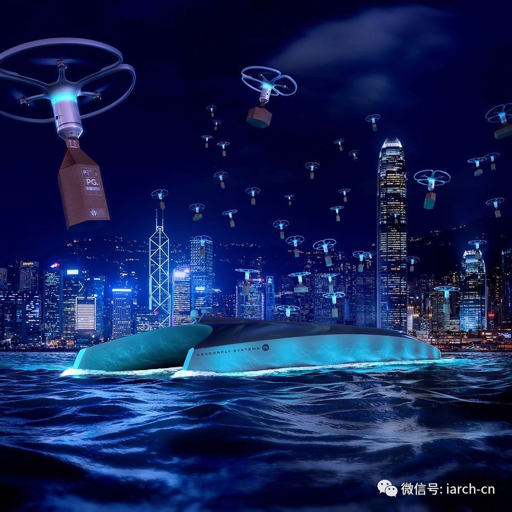 “蜻蜓舰队”与自动驳船共同合作,驳船作为无人机的充电站和调度中心,无人机则用于包裹的运输,它们一般将包裹放在建筑的屋顶或旁侧地面上。