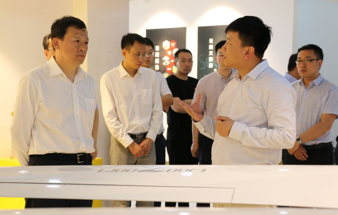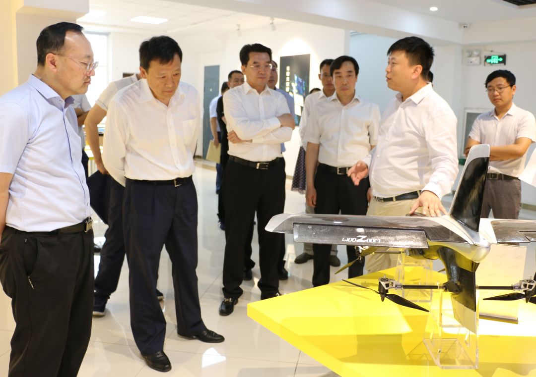 崔枫林副省长一行来到展示区实地视察,先后参观了公司自主研发的“无人机飞行控制系统”、“串列翼倾转旋翼无人机”、“矢量多旋翼无人机”等多款产品。苏文博董事长就公司的发展历程、产品布局、发展战略等情况作了简要汇报,副省长对公司的发展、前瞻性的产品给予了充分肯定,鼓励公司在技术创新方面继续发挥模范带头作用。