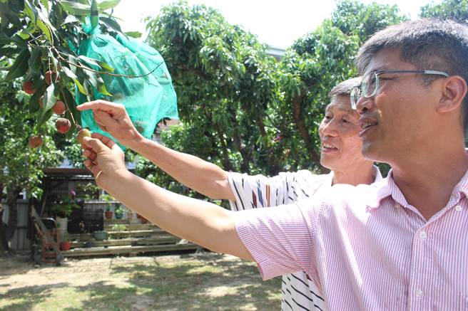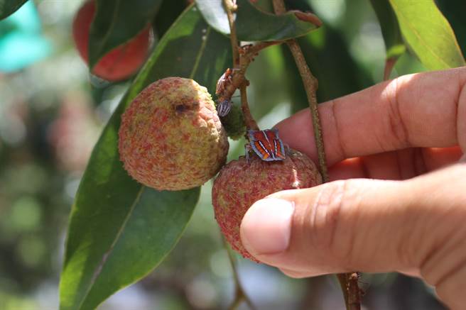 农民(后者)心疼今年荔枝遭椿象大幅入侵。