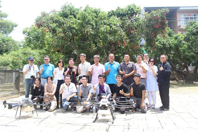 台中侨光科大出动无人机,前往荔枝园喷洒「有机植物皂素」,省工又省时。