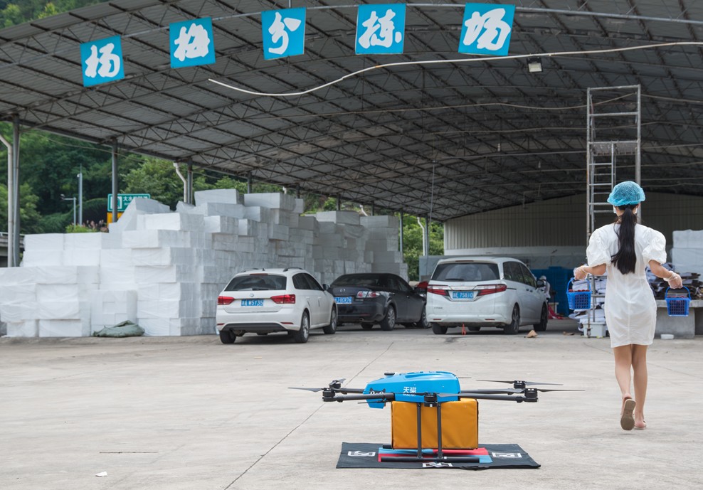 天猫联合菜鸟用无人机为果农运杨梅,保障新鲜上市。这是菜鸟打造的国家智能物流骨干网向农村的深入。