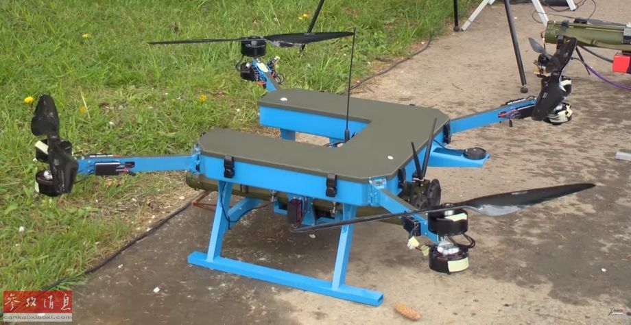 近日,白俄罗斯军队展示了一种颇具“简单粗暴”风格的小型攻击型无人机,能直接挂载一具RPG单兵火箭筒上天,能直接在空中发射,脑洞之大令人叹服。图为大一些的“火箭筒”无人机,可以挂载两具RPG。
