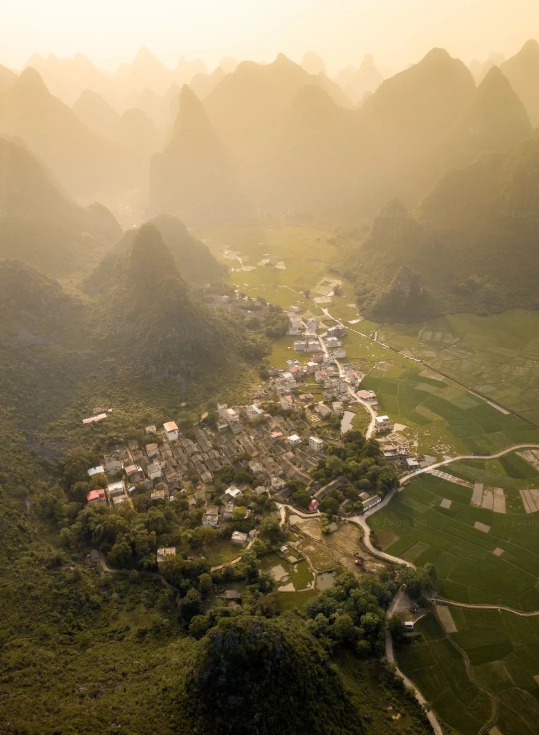 阳朔山水甲桂林,桂林山水的精华在阳朔。相公山是桂林阳朔著名的日出观光点,想要观看日出,可以登山20分钟,若是下雨过后拍摄,云雾缭绕,宛若仙境。要是不想登山,在山脚下放飞无人机亦可拍摄到你心目中的景色,山水的神韵能被无人机的航拍镜头表现得淋漓尽致。
