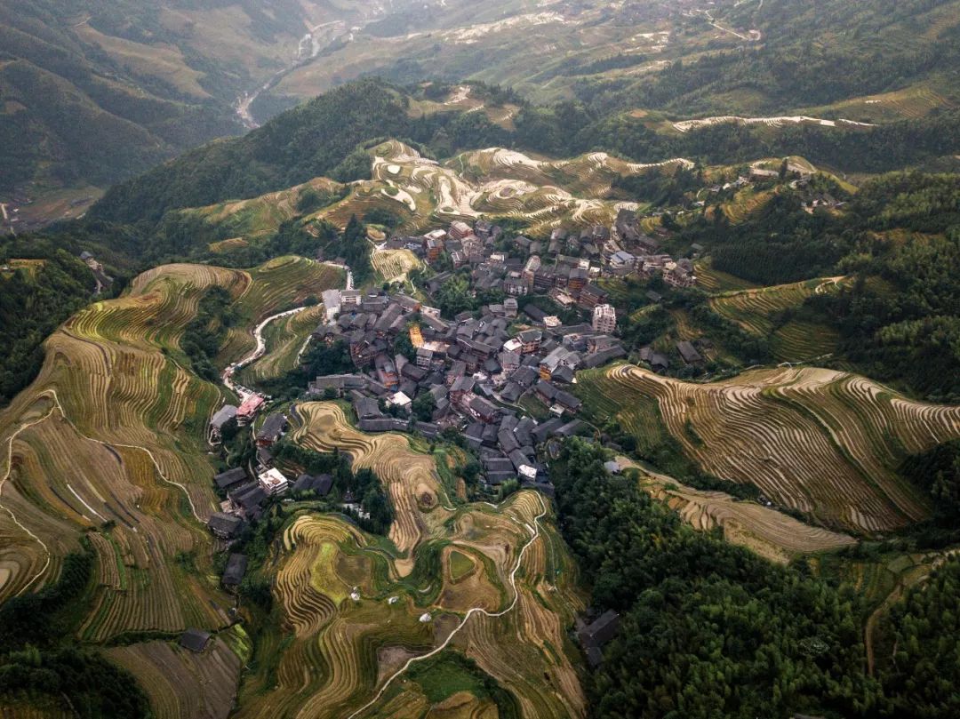 龙脊梯田是桂林地区的一个规模极为宏大的梯田群,和桂林市其他喀斯特地貌的景观有着较大的区别。梯田沿着山脊拾级而上,要寻求不同的拍摄角度意味着要爬山登高。无人机航拍可以为你省去许多这样的烦恼,升至空中,即可享受角度的自由。