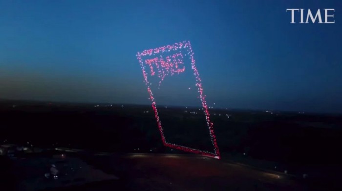 今日(JUNE 11,2018)出版的《时代》杂志呈现了关于「无人机时代」(THE DRONE AGE)的特别报道。本期封面动用了 958 台照明无人机在天空中排布出了《时代》杂志的标志性的徽标和红色边框。