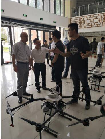签约仪式结束后,张建华校长、周志强院长、杜凤沛副院长等一行领导还长时间驻足大疆MG-1P植保机前,与大疆农业代表方技术工程师展开了深入的交流。