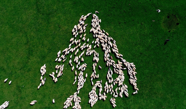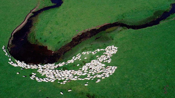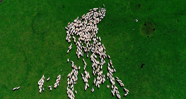 无人机航拍土耳其高地牧羊群 若散落的大米粒
