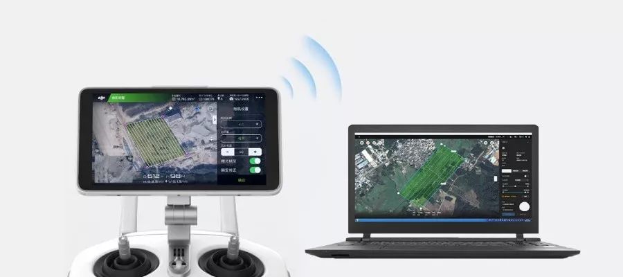 在大面积的农田作业前,植保人员可以先使用Phantom 4 RTK航拍农田,再使用PC GS PRO软件获取农田的实况图像,快速现场建图。以实图信息为基础,植保人员能合理规划植保任务、导入植保机开展自动作业,从而提升从规划到作业的工作效率。