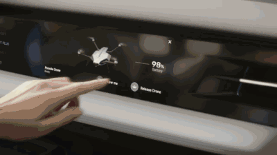但是很多常用的功能,车主完全可以不用花时间去屏幕内寻找,因为这款保时捷电动车已经加持了很多黑科技。比如仪表盘的人眼跟踪系统,全手势调节系统。最吸睛的是,这款Taycan车内还配备了一台无人机,随时能将周围路况传递到车内。、