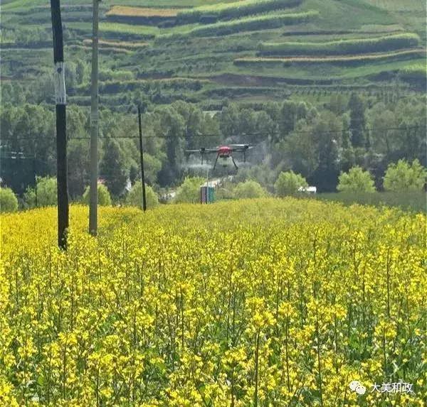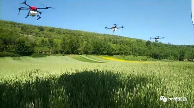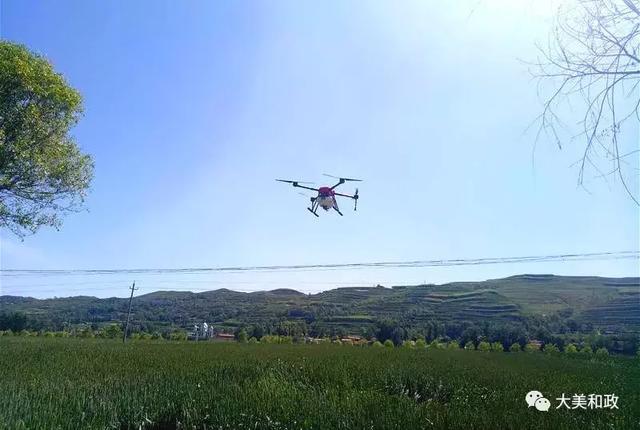 眼下正是小麦的孕穗期,为确保小麦增产增收,需要农民及时喷洒杀虫剂、杀菌剂、植物生长调节剂,以达到防病虫、防干热风、防早衰、增粒重的效果。 6月11日,在松鸣镇科托村千亩小麦示范点,3台无人机正在麦田上方几米高的位置,“嗡嗡”鸣响着来回盘旋,原来这是和政县农机中心首次引进植保无人机在进行喷洒叶面肥作业。田边,三位操作人员手持无线遥控装置,正聚精会神地操控无人机按照电脑预设路线自动作业,肥料均匀地喷洒在小麦绿油油的叶面上。不到十分钟就完成10亩地的施肥任务。群众在现场进行观摩,先进农业植保机械逐渐代替人工劳动,在一望无垠的田野上唱起了“主角”。