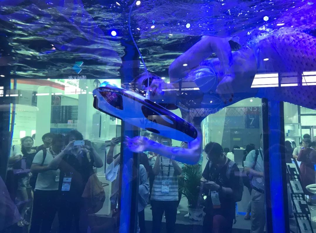 在展会现场,臻迪(PowerVision)为大家打造了与PowerRay小海鳐的梦幻约会——金发碧眼的美人鱼与PowerRay小海鳐在一个一整层楼高的仿真海底畅游嬉戏~