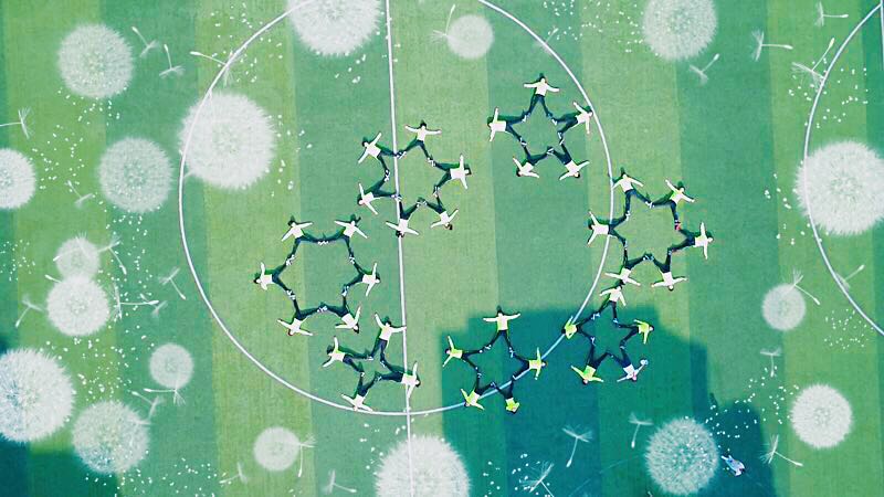 6月13日,山师附小六年级5班的同学们,也玩儿起了“无人机毕业照”,一架时髦的无人机在同学们上空盘旋,操场上的同学们摆出一个个新颖的图案,无人机将这一刻捕捉了下来。