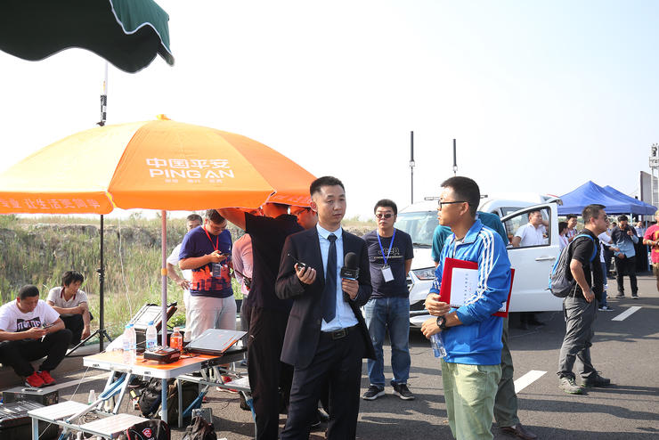 签约结束后,零度智控在室外临近渤海的无人机产业园进行飞行演示。多架固定翼无人机自动编队、拉烟、超低空通场、锁定追车、空中喊话、红外热成像侦察……