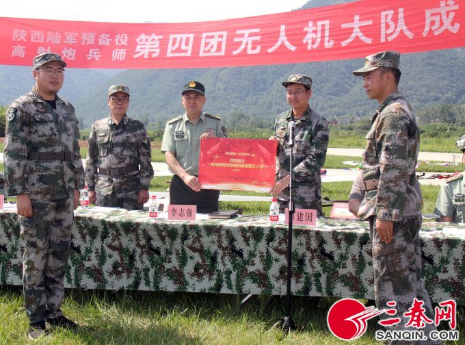 6月13日上午,在雄壮的军歌声中,陕西某预备役高炮师第四团无人机大队在长安区无人机大队飞行训练基地举行。陕西某预备役高炮师师长李志强向无人机大队授旗。无人机大队全体现役和预任官兵参加了成立大会。成立大会结束后,出席成立大会的部队领导和预任领导对无人机大队预征装备和预编人员进行了检阅。无人机大队出动了多批架次、不同类型无人机装备进行了飞行演练。
