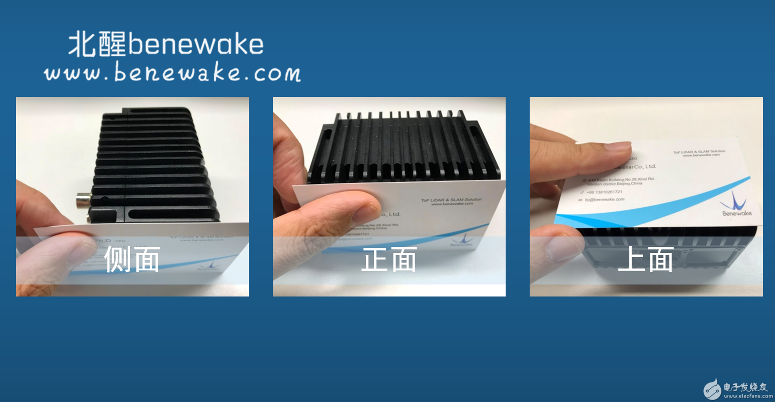 北醒研发的CE30,它是一款具有大视场角的固态激光雷达。它可同时输出132°水平视场、9°垂直视场范围内的灰度与深度信息,且内部无任何机械旋转部件,以保证更高的可靠性与稳定性。