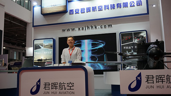 郑总:本次展会有四款核心的产品,分别是:”青龙JH01固定翼无人飞行器“、”蝠鲼JHV01复合翼无人飞行器“、”黑蜂JHM04多旋翼无人飞行器“、朱雀JH02固定翼无人飞行器”
