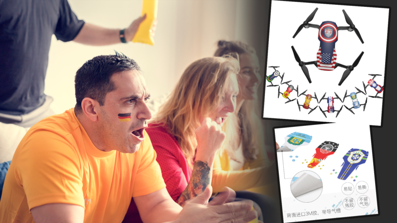 世界杯(FIFA World Cup)正式开锣,球迷未来可观赏 60 多场赛事,你有想过如何为心仪国家队打气吗?除了穿上球衣,航拍爱好者也可考虑购买世界杯主题机身贴,为航拍机换上新衣,在天空中应援。