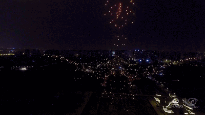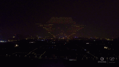 这一晚,伴随着声,光,电的多维艺术形式下,1400架无人机次第升起,组成栩栩余生的凤舞九天,在半空中大放异彩,寓意大唐建都距今1400年历史。
