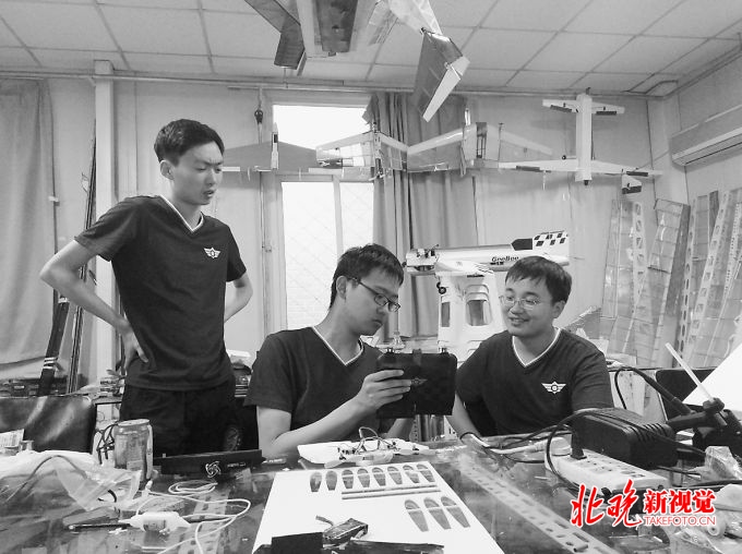 王金瀚、郭嘉伟是这架无人机的发起者,两人都是北航大三本科生。王金瀚现在在北航航空科学与工程学院就读,郭嘉伟则是在软件学院就读。谈及这一发明的缘初衷由,两人说这是缘于大一时“初生牛犊不怕虎”的冲劲儿。