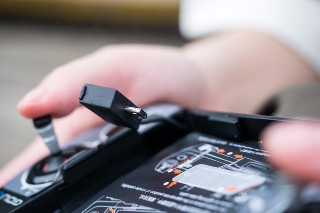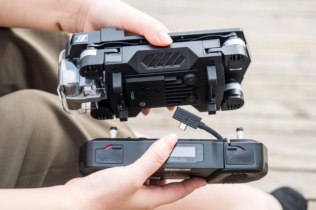 找了一圈机身并没有发现存储卡槽,之后翻看说明书才知道它是内建了16GB闪存,用于保存航拍素材,导出拍摄素材则是通过机尾的USB接口连接电脑导出。另一种方式就是在手机APP上直接播放和下载。