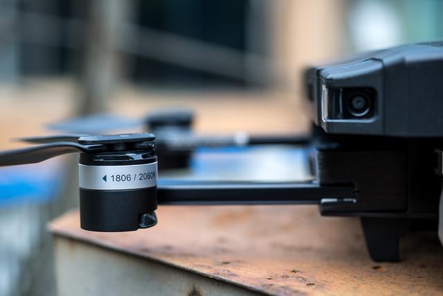 瞄一眼机身底部,这种一眼看不到的地方工艺上细节做得一点也不含糊,不管是散热口,扰流条,活动关节等地方都看得出是精心刻画过的。下视视觉光流探头和两个超声波探头被集中放置在了中间的部分。