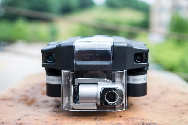 GDU O2机身机前方肩部有一对光学避障探头,用来躲避前方障碍物,看起来也挺顺眼的。作为便携式无人机,云台相机的大小很关键,GDU O2的云台相机设计相当紧凑,大大节省了空间,而搭载索尼1/3" 1300万像素传感器,也保证了录制的画质。
