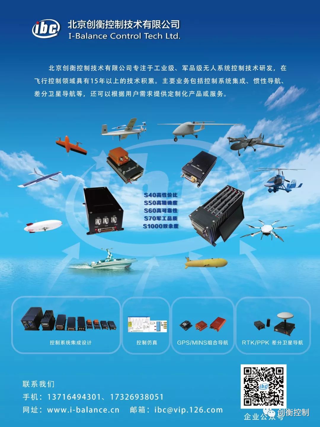 北京创衡控制技术有限公司定位并专注于工业级、军品级无人系统控制技术研发,核心团队源自北京航空航天大学,在飞行控制领域具有20年的技术积累,拥有多项无人机及飞行控制相关知识产权。主要业务包括控制系统集成、惯性导航、差分卫星导航等,其中无人机飞控系统包括常规固定翼、复合式、倾转旋翼、多旋翼、自转旋翼、飞艇等,基本实现无人机机型的全覆盖,全线产品均具有独立自主知识产权,可满足用户深度定制需求。