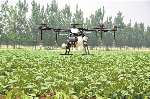 无人机正在烟田作业。