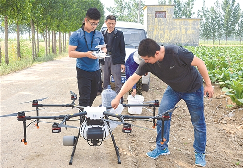 方市烟农专业合作社指定了专门的无人机操控员。操控员接受无人机厂家专业培训,考取了相关资格证,做到持证上岗,有效保障了服务质量和飞行安全。图为方市烟农专业合作社无人机操控员正在设置喷药作业数据。