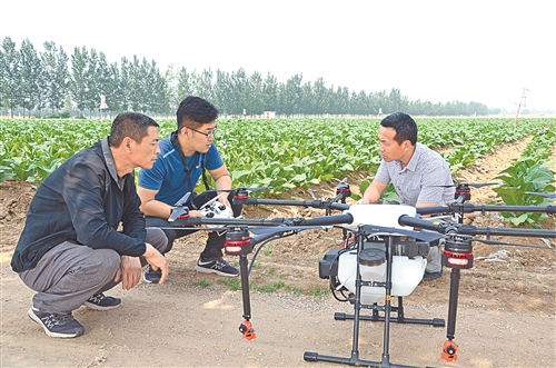 山东潍坊高密方市烟农专业合作社的两台农业植保无人机近日飞进烟田,为烟农提供专业化植保作业服务。为提高服务水平,满足入社烟农对烟田精细化作业的需要,解决烟农用工难、劳动力短缺等问题,5月,高密市局(分公司)引导并帮助方市烟农专业合作社通过公开招标方式采购了两台农业植保无人机,并委托厂家培训两名合作社工作人员负责操控无人机,为烟农提供服务。